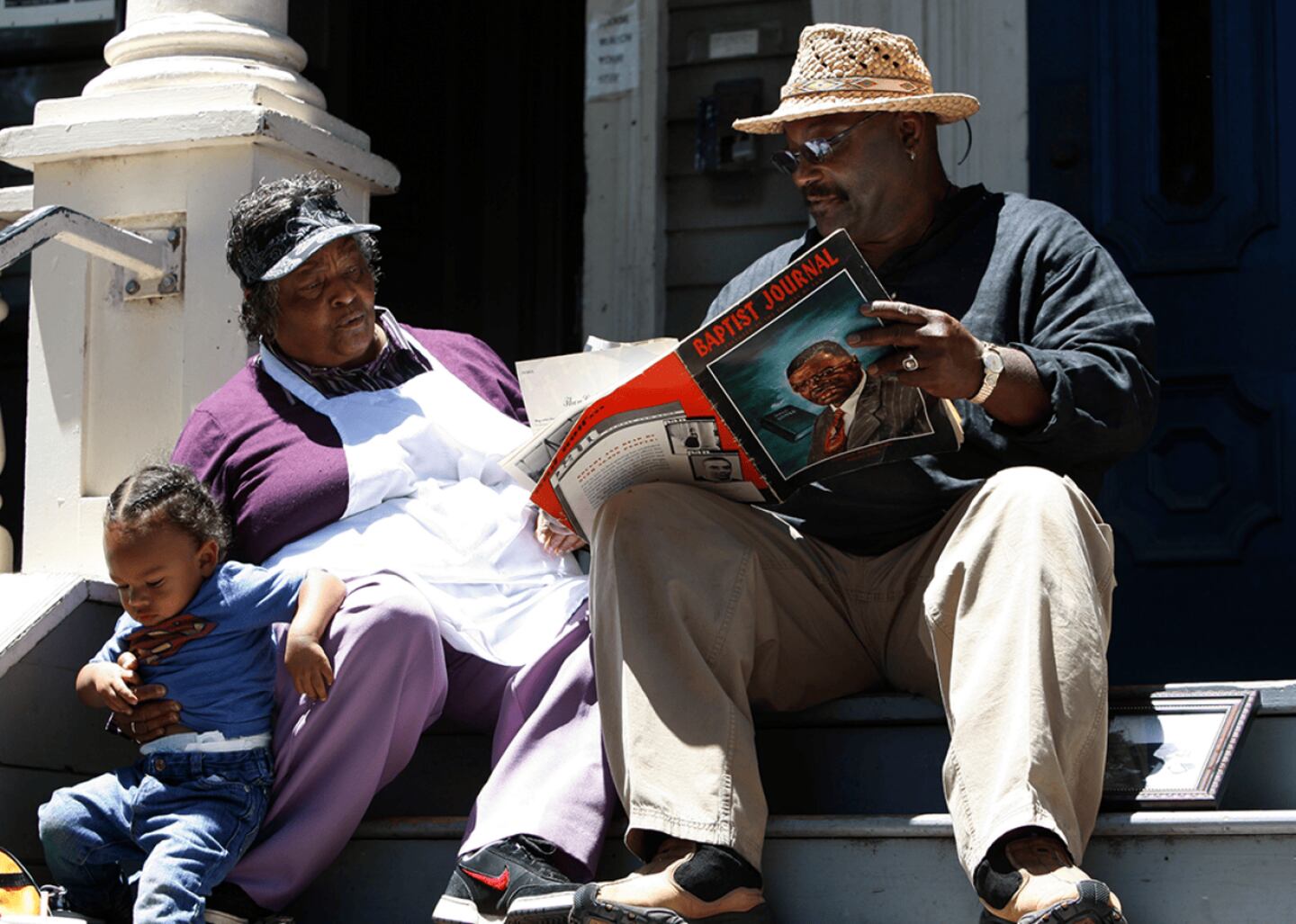 A big part of Juneteenth is celebrating family legacies. Here, several generations in Oakland, California, pore over pictures in a Baptist Journal, possibly looking for photos of other family members, a few days before the city's Juneteenth celebrations.