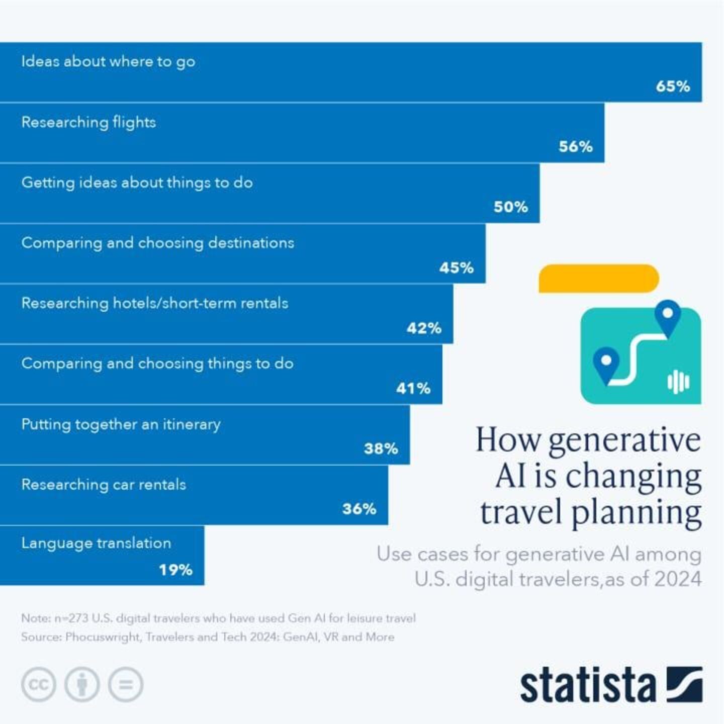 According to Statista, over 19% of the American population uses generative AI for language translation when on an international holiday. Generative AI effectively breaks language barriers and facilitates effortless communication between travelers and natives. It not only helps with communication but also enhances appropriate cultural interaction and improves safety, especially for travelers navigating foreign lands.