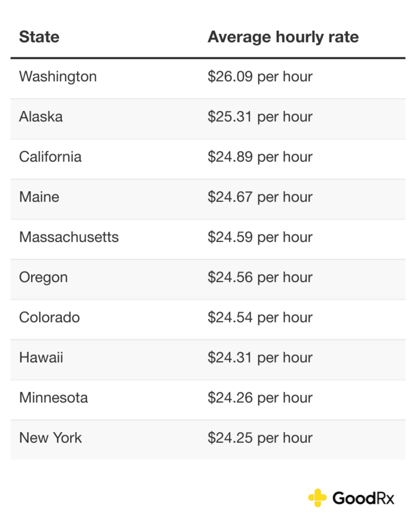 The national average hourly rate for in-home caregivers is about $22 per hour. Alaska, California, Massachusetts, and Washington offer some of the highest average hourly rates — about $24 to $26 per hour. Below are the top 10 highest-paying states for family caregivers, according to data from Care.com.