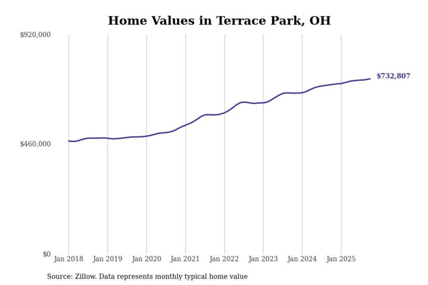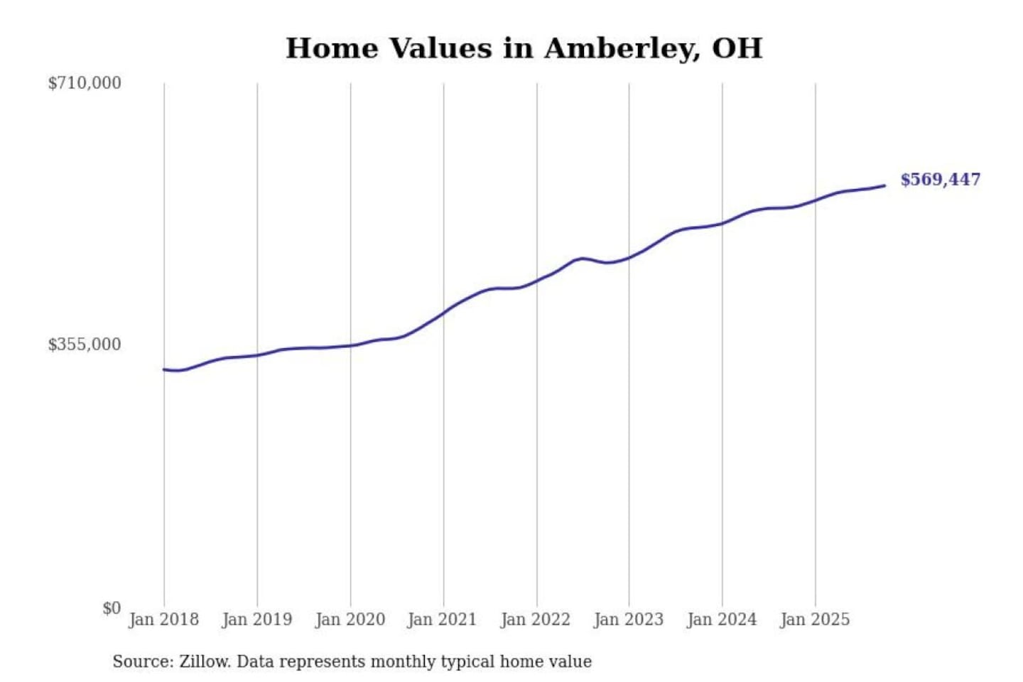 Stacker compiled a list of cities with the most expensive homes in Ohio using data from Zillow. Cities are ranked by the Zillow Home Values Index for all homes as of October 2025. The charts in this story were created automatically using Matplotlib.