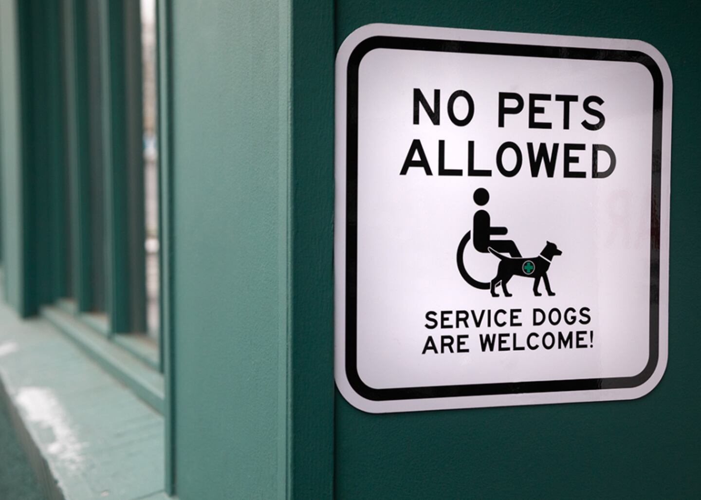 Thanks to public accommodation laws, businesses can't prohibit people with service animals from entering or charge a fee for the service animal.