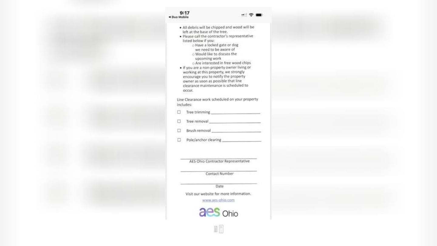 The Union Police Department said in a social media post that representatives from AES Ohio & Fitzwater Outdoor Services will be in the area to trim trees and conduct vegetation for power line clearance purposes.