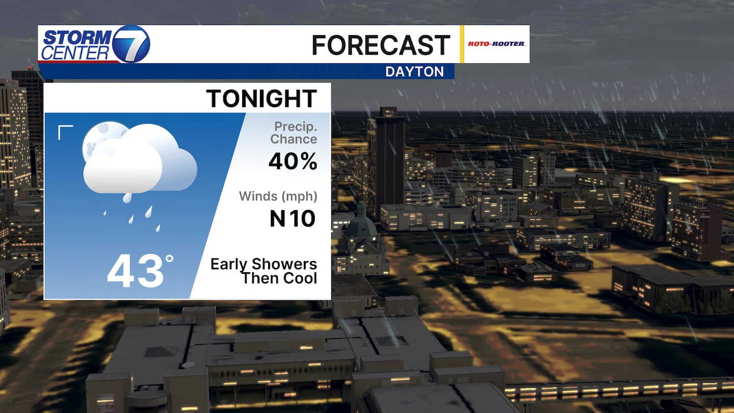Tonight we will cool off nicely down into the low and middle 40s. Showers will taper off for those who experience them. The sky will turn partly cloudy overnight.