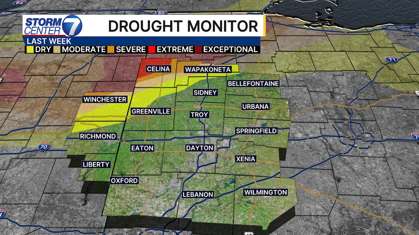 DAYTON — Good Thursday afternoon to you. Meteorologist Nick Dunn here to share some excellent news. We have been battling drought conditions for several months on end. The latest drought monitor reflects there are no longer any drought conditions in the Miami Valley.