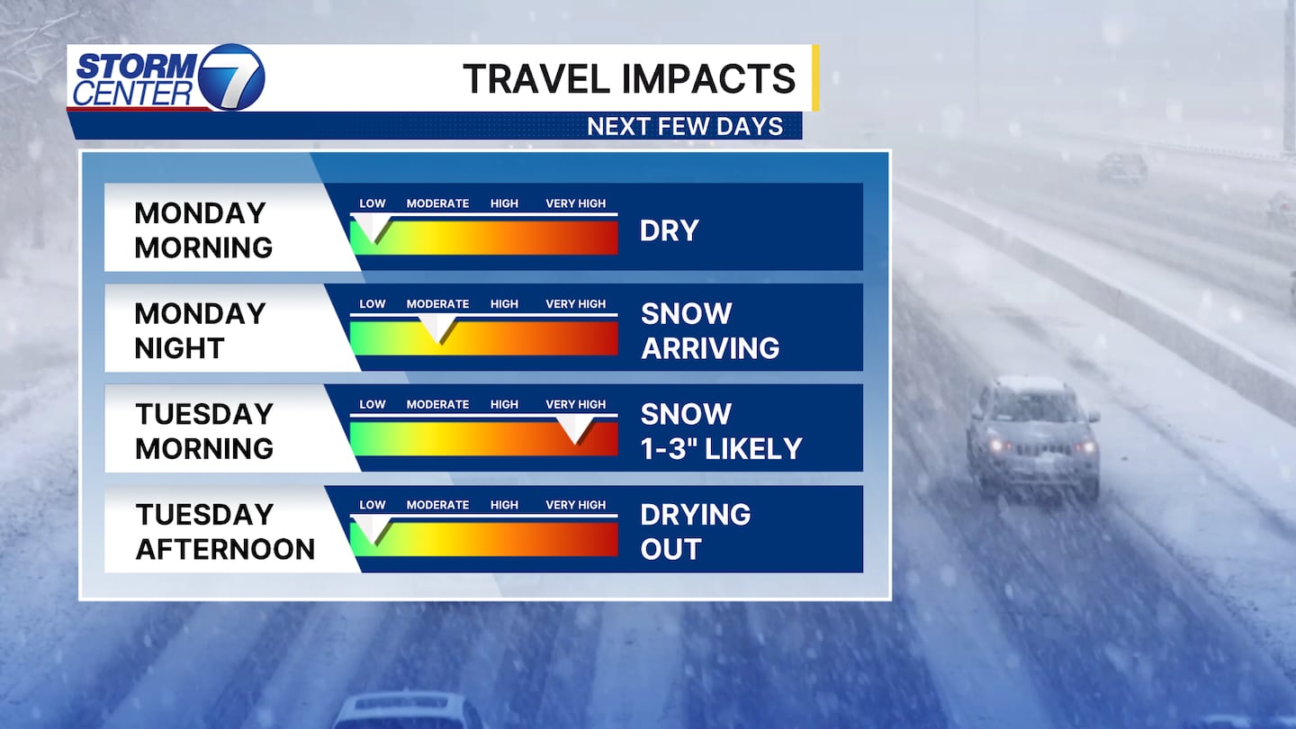 I would expect a bit of a tough commute Tuesday morning. Stay tuned as we update any changes in the next 18 hours or so!