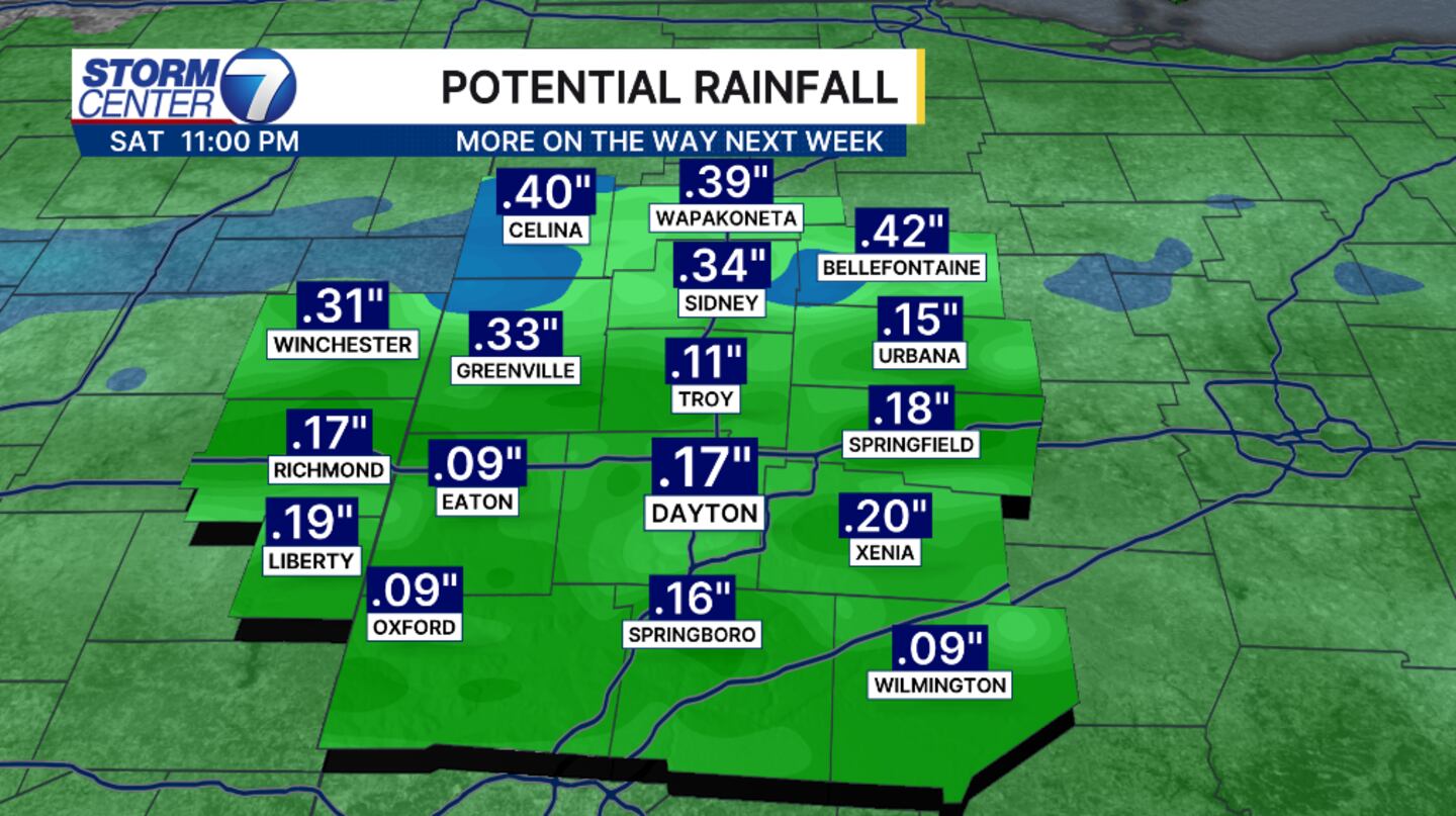 DAYTON — A scattered chance for rain and a few storms are possible throughout Friday.