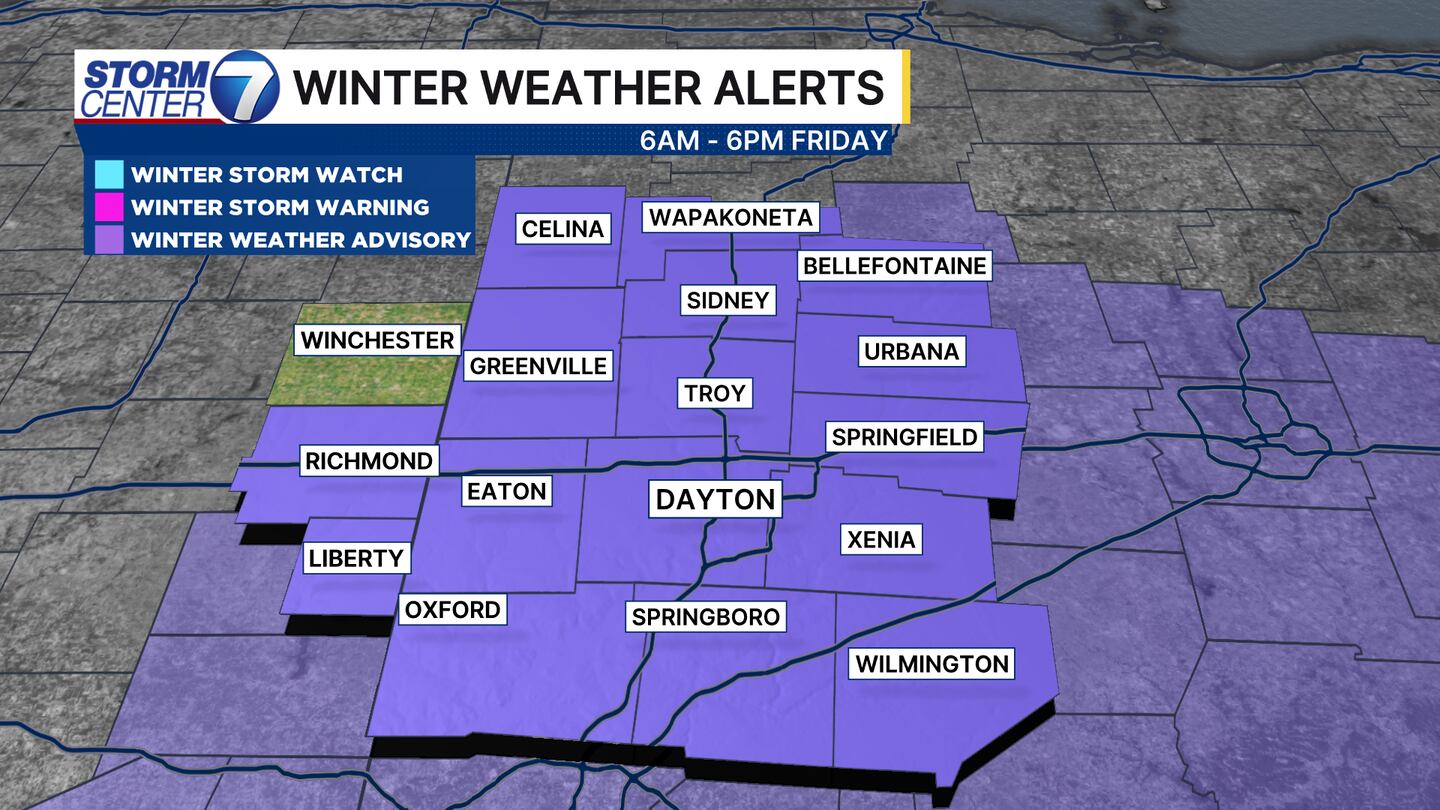 The main event occurs between 7 AM and 1 PM. Snow is likely for much of the area. Southwest of Dayton, we may see some sleet or even freezing drizzle mix in briefly.
