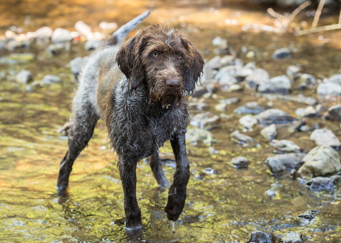 German shorthaired pointers were originally bred in Germany during the late 1800s as a dog that would instinctively perform various hunting-related duties. The breed's name is partially derived from the arrowlike stance the dog exhibits while locating prey. German shorthaired pointers' high energy makes them good company for long hikes, while their strong work ethic and desire to please make them all-around excellent additions to any family.