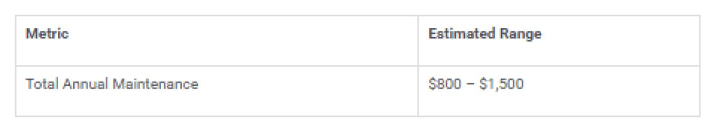 Note that this value is for routine maintenance and minor repairs for newer vehicles. Typical driving conditions and proactive maintenance habits may vary for each car owner. The estimated range may go up to $1,200–$1,800/year for major repairs or vehicles with higher mileage or older ones. It is often difficult for older vehicles to acquire parts, and unexpected repairs may be required.