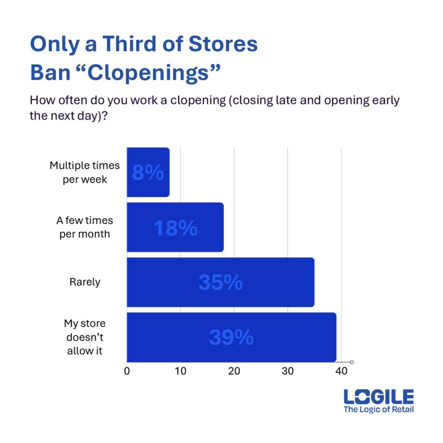 Despite local Fair Workweek laws designed to provide advance notice, reality remains chaotic for most workers. Just 23% say their weekly schedules are very predictable, and 20% of workers in regulated areas still face weekly last-minute changes. Even more concerning, 26% of associates are scheduled for “clopening” shifts—closing at night and opening the next morning—multiple times per month. Yet, only 39% say their store has policies to prevent this practice.