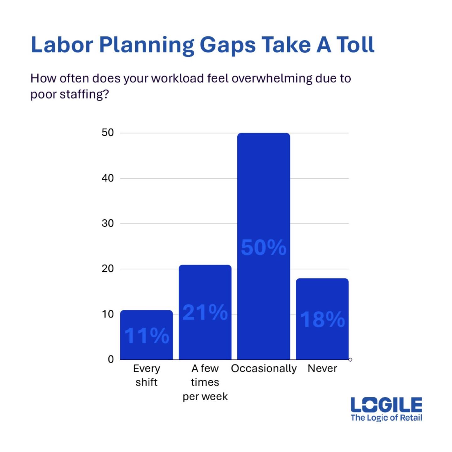 Only 36% of frontline retail associates say staffing schedules consistently align with actual store traffic patterns. This persistent mismatch indicates a deeper issue with labor allocation, emphasizing the importance of aligning labor with actual demand and work requirements in real-time.