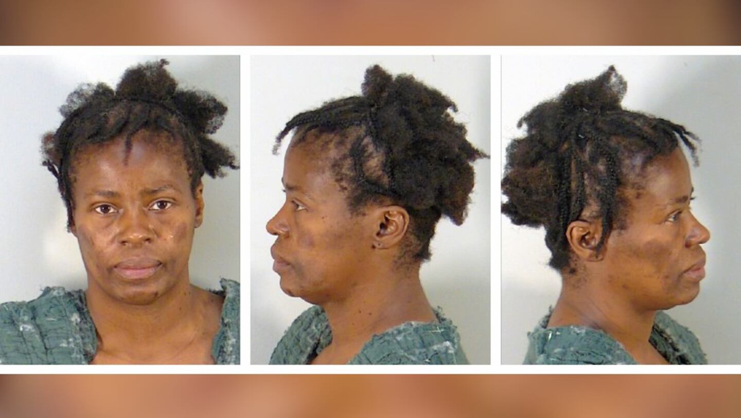 The affidavit describes the woman as a Black woman with a dark complexion and hair worn short, with twists throughout. She wore a dark-colored long-sleeved shirt or sweater over dark leggings or pants. On her feet were light-colored sandals or slides.