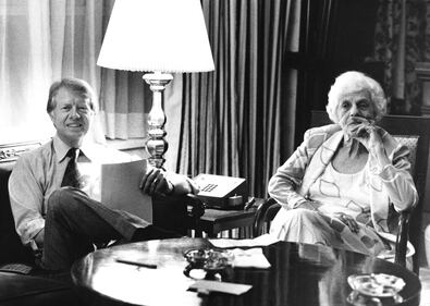 Jimmy Carter and his family Jimmy Carter and his mother, Lillian view the proceedings at the Democratic National Conventional via television, July 14, 1976 in New York at the Americana Hotel. (AP Photo) (UNCREDITED/AP)
