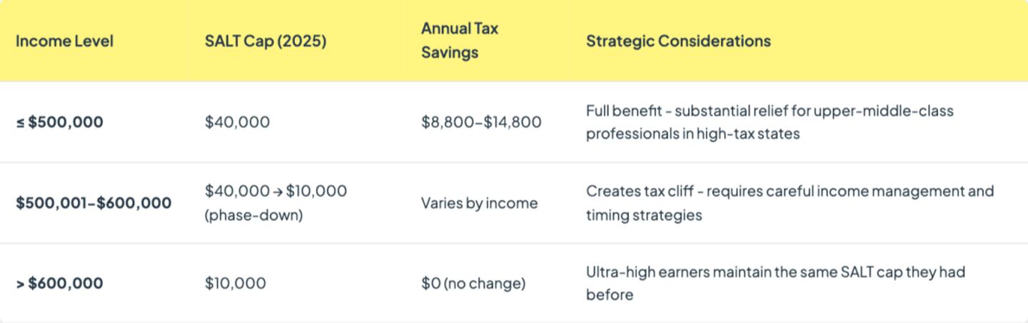 1. SALT Deduction: Temporary $40,000 Limit with Income Phaseouts