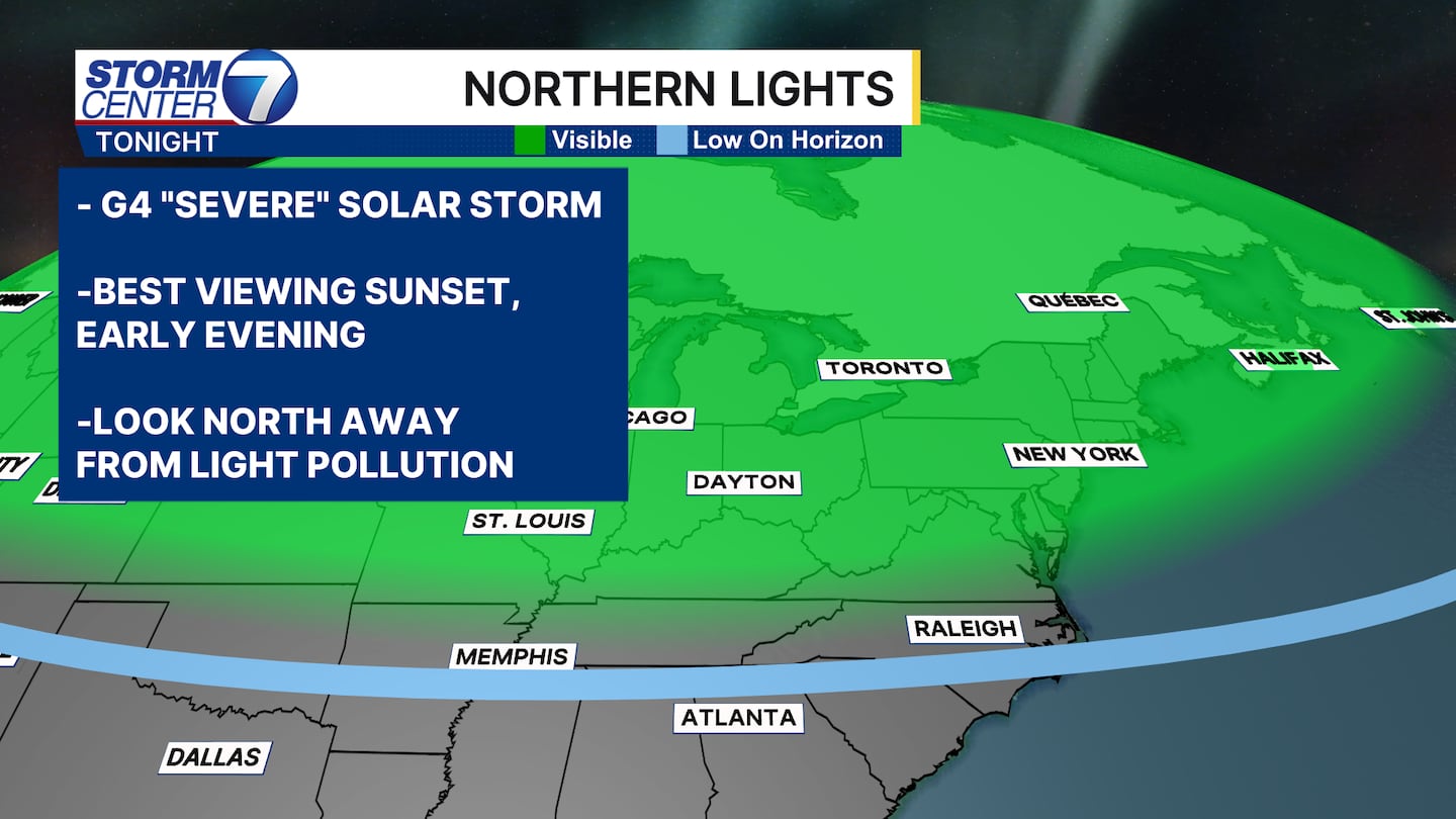 The Northern Lights put on a show last night and we’ll have another shot at seeing them TONIGHT in the Miami Valley. Storm Center 7’s Austin Chaney breaks down the best time and how to watch for the Northern Lights LIVE on News Center 7 at 5:00 and 6:00.